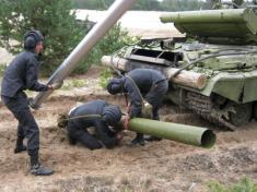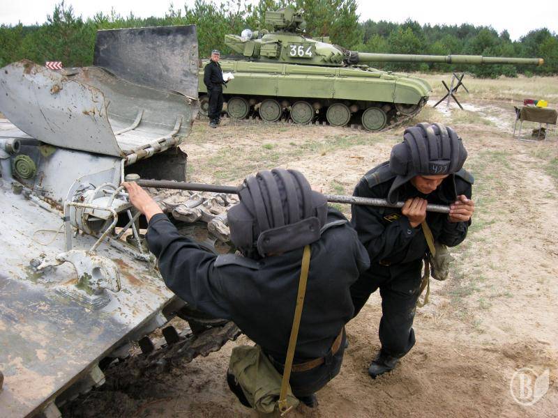 Конкурсанти змагань на кращий танковий взвод Збройних Сил України, який проходить зараз у 169-му навчальному центрі Сухопутних військ ЗС України на Чернігівщині, виконали навчальні вправи з водіння танку Т-64.