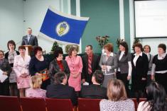 Усі вони отримали почесні грамоти та подяки Федерації профспілок України, Федерації профорганізацій області, Чернігівської обласної ради, Чернігівської обласної державної адміністрації, Чернігівської міської ради. А от Ірина Дорожкіна — директор підприємства “НМЦ” профспілок та Тетяна Матвеєва — голова Чернігівської обласної організації Профспілки працівників освіти і науки України отримали з рук Євгена Драп'ятого нагрудні знаки ФПУ “Заслужений працівник профспілок України”.