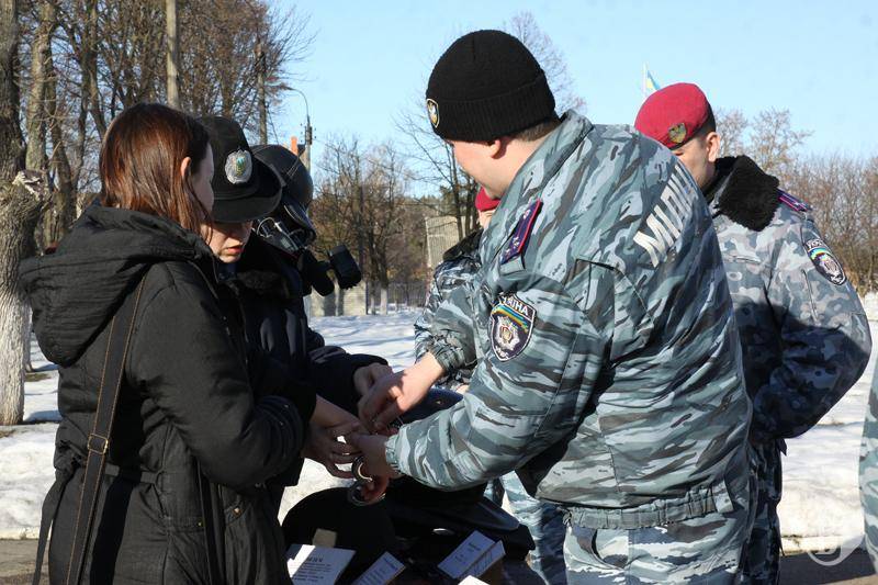 На плацу чернігівського навчального центру школярі побачили виставу, як ці треновані міліціонери можуть виконувати спеціальні завдання, як володіють прийомами рукопашного бою.