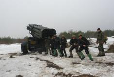 «Гради» по черзі відстрілюють боєзапас. Перші постріли пристрілочні. Зафіксувавши вибухи з КП лунає команда з виправленими координатами. Командири екіпажів передають їх навідникам. Ті виставляють приціли і піднімають стволи за визначеним рівнем. Обслуги впевнено виконують всі команди. Машини знову готові до роботи.