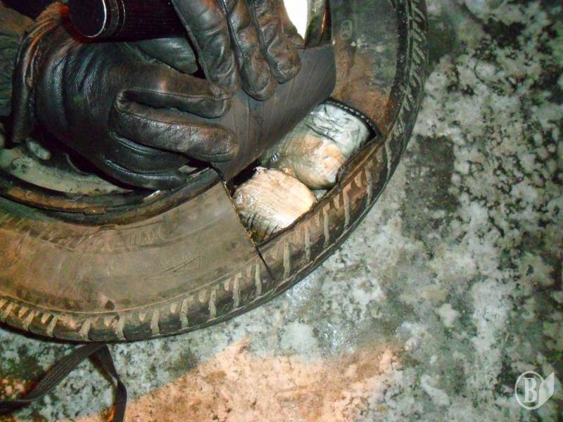 Під час проведення поглибленого прикордонно-митного догляду транспортного засобу, у порожнині запасного колеса, яке знаходилось у багажному відділенні автомобіля, правоохоронці виявили та вилучили 21 поліетиленовий пакунок з підозрілою речовиною.