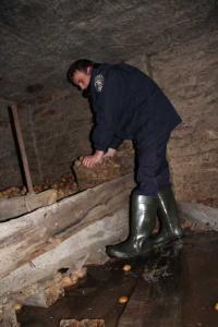 Помічники у погонах встигли якраз вчасно. Вода в погребі почали тільки-но прибувати. Удвох міліціонери упродовж кількох годин підняли нагору запаси старенької та розмістили їх в сухому місці.