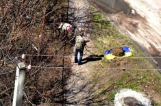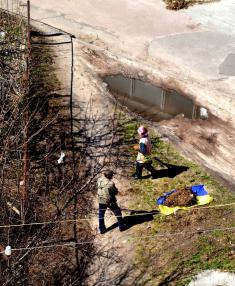 Комунальники Чернігова збирають сміття на полотнище схоже на Державний Прапор України.
