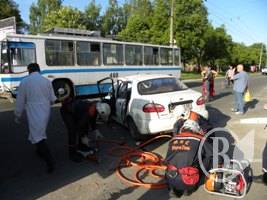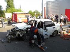 В результаті дорожньо-транспортної пригоди водій та пасажирка легковика опинилися затиснутими деформованими конструкціями автомобіля. Перехожі, які стали свідками ДТП, прийшли на допомогу та вивільнити жінку, проте, аби звільнити водія, довелося залучати рятувальників.