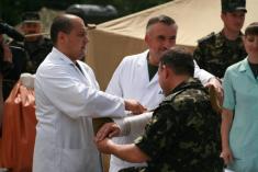 На завершення тренування офіцерам продемонстрували евакуацію населення і військовослужбовців на польовому збірно-евакуаційному пункті. Тут військові медики надавали потерпілим медичну допомогу, для евакуації людей прибули автобуси, а також пожежний потяг.