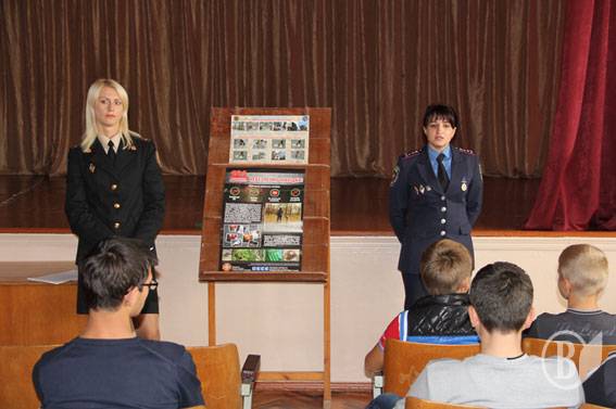 С целью профилактики уголовных правонарушений, которые совершаются детьми и связаны с анонимными сообщениями о заминировании учебных заведений, а также о правилах обращения с взрывоопасными предметами и пожаловали к старшеклассникам Черниговского коллегиума №11 старший оперуполномоченный уголовной милиции по делам детей УМВД в Черниговской области капитан милиции Оксана Зубец и ее коллеги из пресс-службы ГСЧС в Черниговской области.