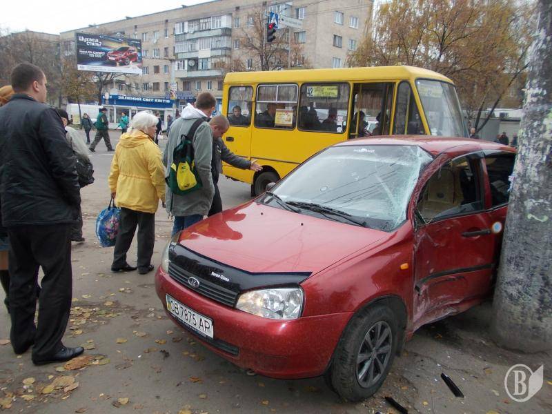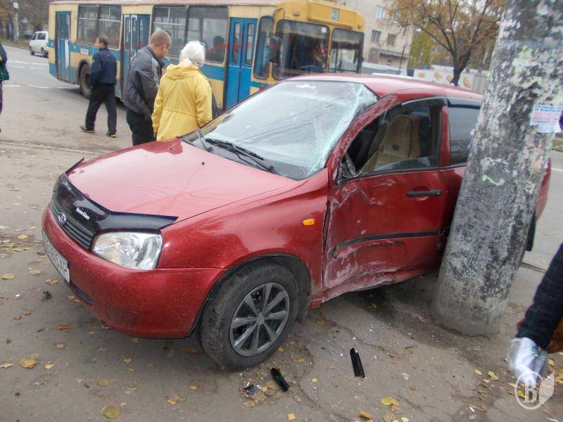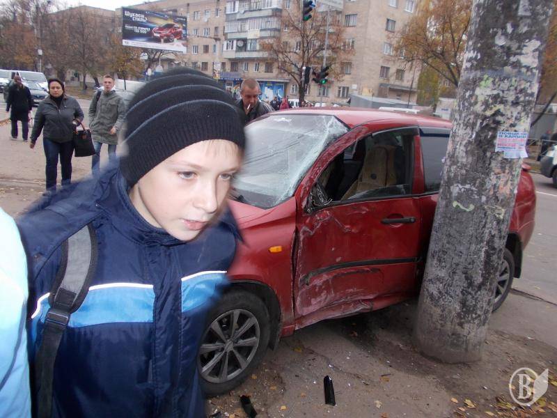 Авария на остановке - легковик врезался в столб и чудом не зацепил людей