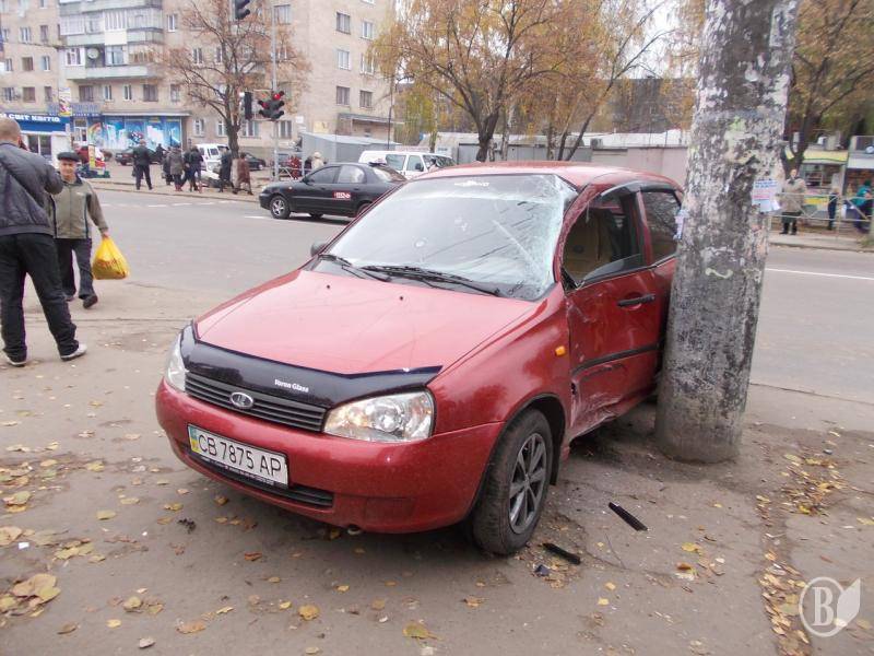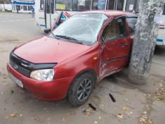 Очевидцы видели, что этот автомобиль двигался по проспекту Мира со стороны областной больницы, а на светофорном переходе около рынка "Ремзавод" из-за маневров белого легковика, который пытался его обогнать, водитель красной "Лады" резко затормозил и автомобиль занесло бортом в самый столб.