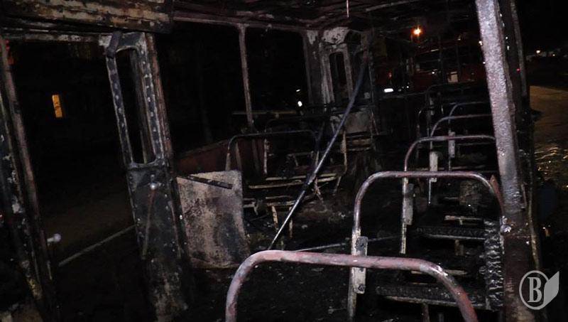 Проежжие водители автомобилей останавливались и пытались потушити троллейбус. Но он полностью выгорел за 15 минут.
