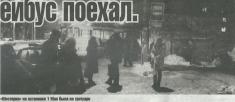 — Это наши дороги. Налипания, бугры снега и льда. Троллейбус снесло. Где-то люди заходили, тряханули... Правое переднее колесо оказалось на бугорчике снега. Троллейбус поскользнулся, перескочил через бордюр. Когда троллейбус снесло с бугра льда, он зацепил машину, потом пошел на диспетчерскую. Там, где диспетчерская, — уклончик.