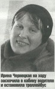 — Все произошло мгновенно... — говорит 31-летняя кондуктор Ирина Чернецкая. — Такое со мной за девять лет работы впервые. Осадок до сих пор остался. Люди ехали с работы. Стояли на остановке. Зашли в троллейбус, я тоже. Тут троллейбус тронулся с места. Ну, поехал, так поехал. Я и не поняла, что случилось. Потом хоп — троллейбус инкассаторов протаранил! Испугалась. Растерялась. Скорость была небольшая. Но уверенная. Выскочила на ходу из троллейбуса. Потом вскочила в пустую кабину водителя... Нажала на левую педаль, тормоз. Я у водителей когда-то спрашивала, что делать, если что, что нажимать. Вдруг водителю плохо станет или еще что. Всякое может быть в жизни. Это транспорт.