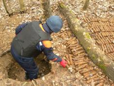 730 артиллерийских снарядов калибром 45 мм и 8 подрывников времен Великой Отечественной войны обнаружила группа пиротехников 1 марта в лесном массиве при выезде из г.Нежина на расстоянии 800 м от объездной автодороги Копти – Нежин – Прилуки.