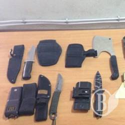 В результате обзора в передних дверцах автомобиля, со стороны пассажира, обнаружено электрошоковое устройство «Jsj-609». Но эта находка не стала единственной. В личных вещах водителя и пассажира обнаружены три ножа, одна саперная лопатка с переменными насадками и нож для обработки мяса. Все вещи изъяты.