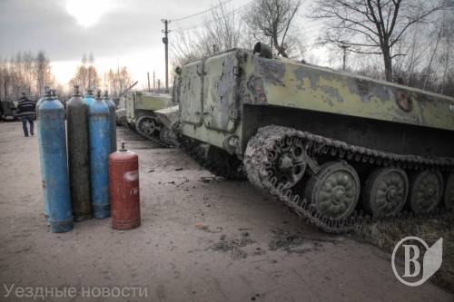 Два десятки одиниць бойової техніки на базі переробки вторинного чормету помітили надвечір 24 березня самооборонівці Ніжина.