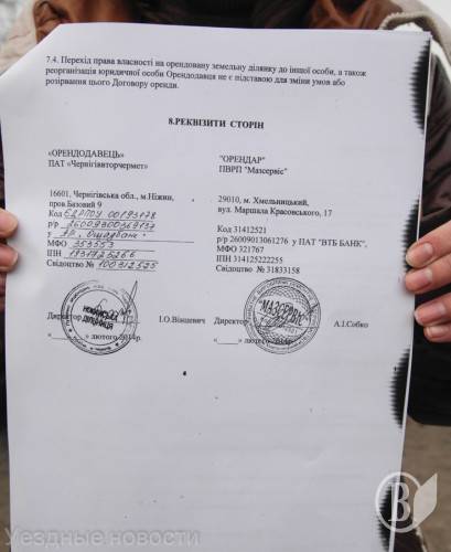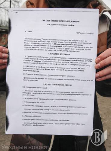 Також вони розповіли, що півтора місяці тому всю цю техніку їм привезли з Хмельницького. Ніжинську базу вторчормету вони використовують як «пункт тимчасового тримання». Працівники бази показали договір на оренду земельної ділянки для двадцяти дев’яти БМП. І чотирнадцятого березня власники бойової техніки дев’ять одиниць військових машин забрали до Києва.