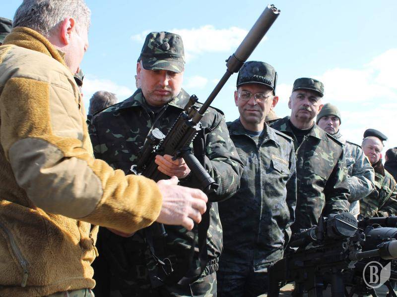 Исполняющий обязанности Президента Украины на полигоне учебного центра ознакомился с боевыми возможностями украинского оружия, перспективными образцами, которые планируется передать на вооружение Вооруженных Сил Украины: стрелецким оружием, средствами защиты, связи, амуницией и тому подобное. Также состоялись упражнения с целью проверки боевых и ходовых возможностей военной техники.