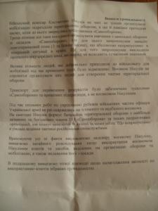 Тож щоб очільник військкомату «не розслаблявся» самообронівці залишили йому "подарунок" – шаблон рапорту на звільнення.