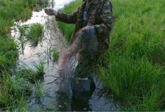 Мужчина принес на озеро сетку общей длиной 23 метра.