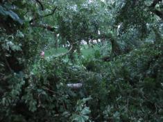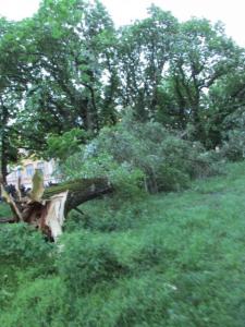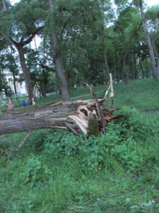 Что примечательно, никаких резких порывов ветра перед падением тополя не было. Если присмотреться на фото, огромный тополь – внутри протрух, хотя снаружи никаких признаков внутренней болезни дерева незаметно.