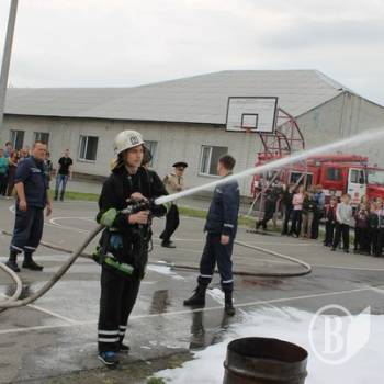 Когда состоялось условное воспламенение, дети и персонал по сигналу «Внимание всем!» были эвакуированы в безопасный район – на стадион. Там их ожидали гости заведения, которые продемонстрировали возможности своей пожарной техники и действия при локализации и ликвидации ячейки пожара. Школьники смогли попробовать себя в качестве спасателей – в боевом снаряжении гасили пожар. Учителя также не остались в стороне – с удовольствием примеряли на себя огнезащитные костюмы.