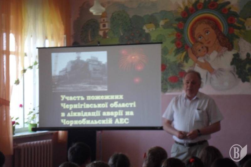 Вчителі школи провели з учнями виховні заняття з цивільного захисту. В рамках цих заходів перед учнями виступив ліквідатор аварії на Чорнобильській атомній електростанції полковник служби цивільного захисту у відставці Добриця В.П. та розповів про участь пожежних Чернігівської області в ліквідації цього страшного лиха, яке трапилося 26 квітня 1986 року.