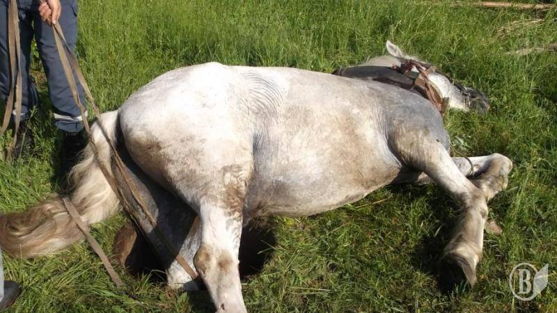 Конь Лыско задней конечностью упал 28 мая в незакрытый крышкой колодец водопроводной сети.