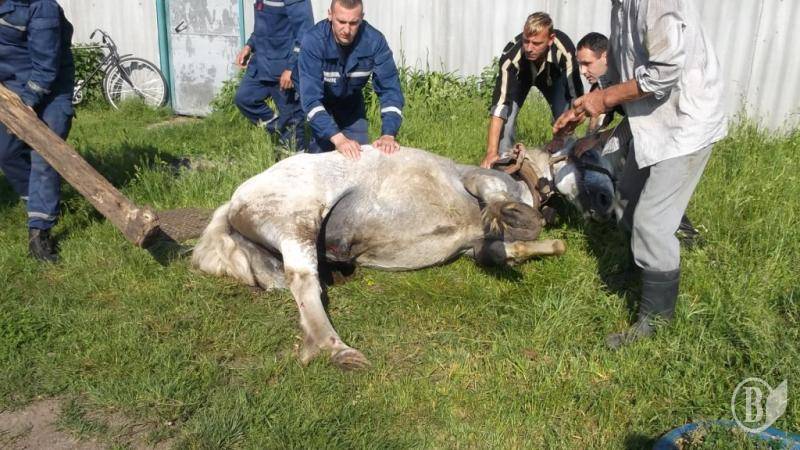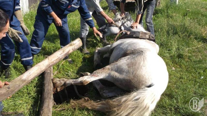 По вызову на место события прибыли спасатели 10-й государственной пожарно-спасательной части. С помощью веревки и подручных средств бойцы Службы «101» провели спасательные работы и освободили коня из ловушки.