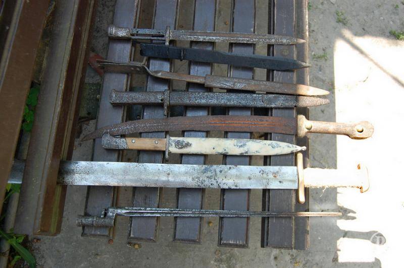 В ходе обыска помещений задержанных правоохранители изъяли карабин «Мосина», 10 единиц холодного оружия (штыки, штык-ножи, сабля и меч), патроны разных калибров и взрывчатое вещество - порох.