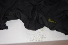 В Чернігівському слідчому ізоляторі під час догляду передачі на ім’я засудженого в нижній частині чоловічої куртки було виявлено речовину зеленого кольору рослинного походження. По каналу 102 було викликано слідчо-оперативну групу Чернігівського міського відділу УМВС, де в присутності понятих проведено вилучення та документування даного факту.