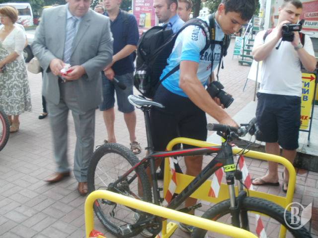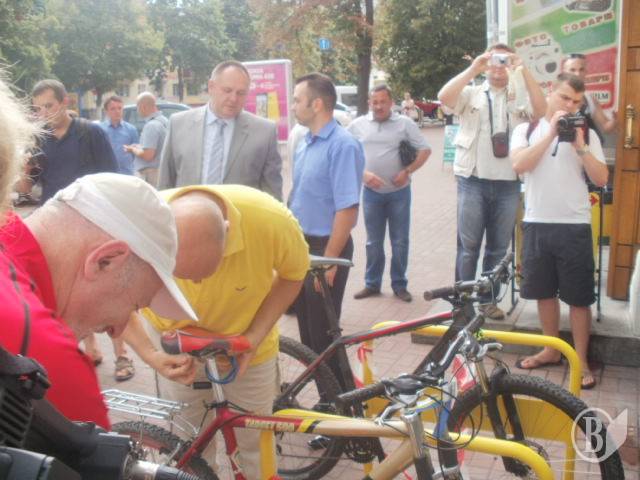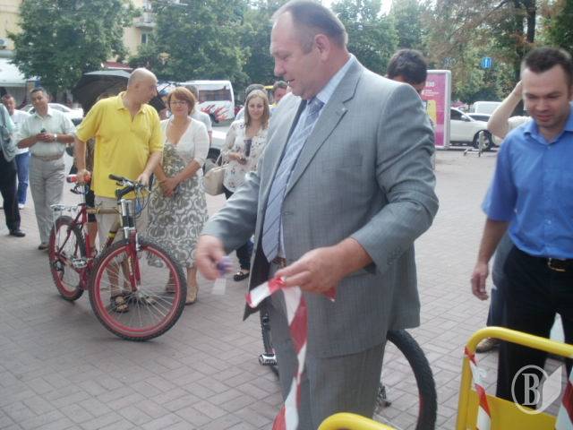 Одним из первых «оценил» стоянку для своего двухколесного коня депутат черниговского городского совета от фракции «Батькивщина» Вячеслав Лебедь.