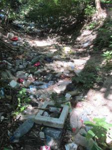 Адже окрім вже вищезгаданих котів весь рівчак буквально під зав’язку забитий різноманітними залишками людської життєдіяльності: порожні банки з-під фарби, шприці, гнилий одяг, взуття, численні пластикові та скляні пляшки, чашки, чайники та інші елементи сервізу, навіть телевізор . Одним словом, картина глобального Апокаліпсису..