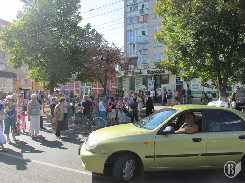 В Чернигове вблизи отделения банка"Демарк"по проспекту Победы, возмущенные многочасовыми стояниями в очереди, чтобы забрать 300 гривен вкладчики перекрыли проезжую часть. В это время в банкомате как раз закончились деньги.