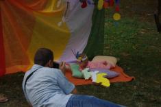 Организаторы в парке напротив Мегацентра разместили 3 локации для фотографирования – индианцы, шары и прованс. 1 локация – 50 гривен. А под деревцем стоял прозрачный бокс – копеечку можно было класть и туда.