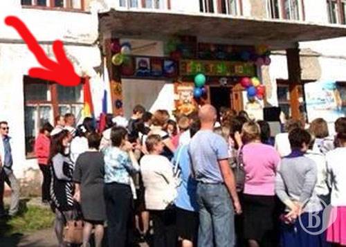 Перед вами школа одного из городков России – на Камчатке. Одно фото выложили в сети Тwitter, но впоследствии удалось найти и другое, сделанное тем же фотоаппаратом, на котором хорошо видно Русский флаг, как и флаг Камчатки, как территориального образования.