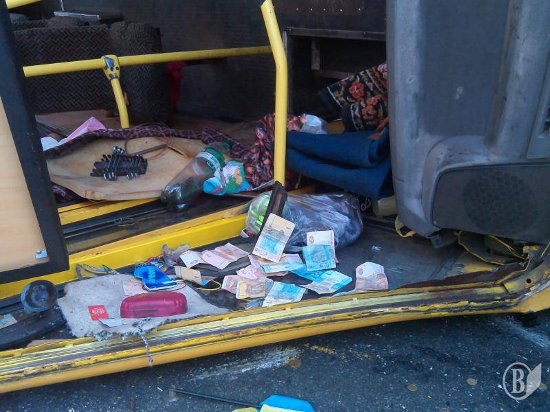 Разбросанные по асфальту гривневые купюры, битое стекло, обломки металла и пластмассы, перевернутая на бок маршрутка и «восьмерка» с разбитым передом – так выглядело место ДТП, которое случилось сегодня в Чернигове по проспекту Победы, – в районе «Прогресса».