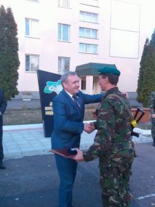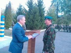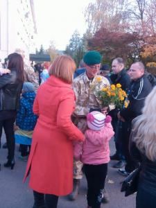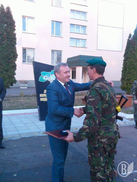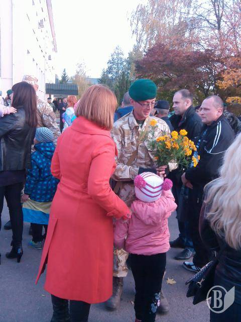 Зустрічали прикордонників, які мужньо боронили українські рубежі на Луганщині, не лише рідні, друзі і колеги, а й керівництво області та міста. (голова обласної ради Микола Звєрєв і заступник чернігівського міського голови Станіслав Віхров).