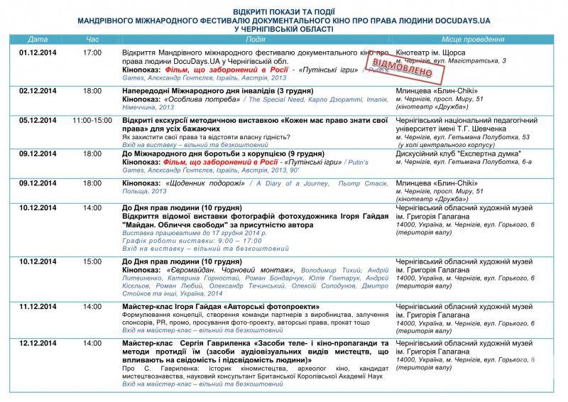 Координатор проекту «Мандрівний фестиваль документального кіно про права людини «DocuDays UA» в Чернігівській області» Геннадій Висоцький вважає дану ситуацію, «м’яко кажучи», дивною.