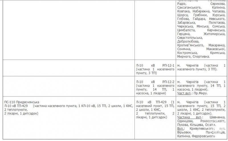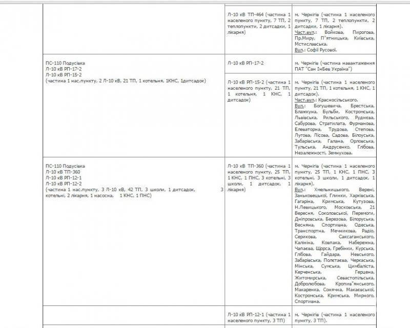 ПАТ"Черниговоблэнерго"опубликовала полный список черниговских улиц, на которых будут отключать электроэнергию.