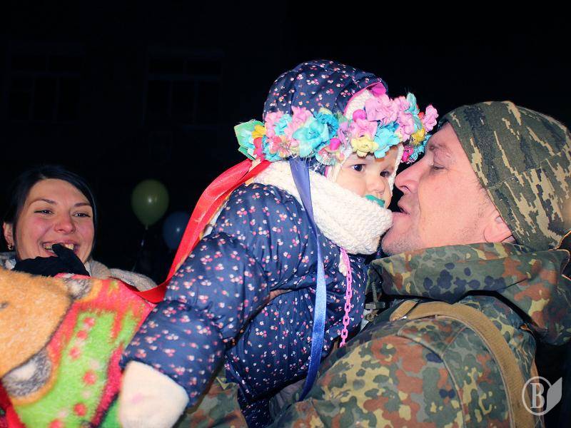 Бойцов торжественно встретили сотни киевлян и деснянцев, волонтеры, представители общественных организаций и родни.