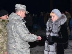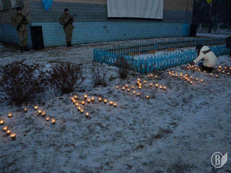 А діти у дворі школи на завершення акції із запалених свічок склали слово – символ вічності - «Пам’ять». Полковник Сергій Маленко вручив рідним 26-ти загиблих воїнів-танкістів державні та військові нагороди.