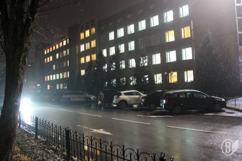 После 18:00 вышли трое мужчин с пакетами из центрального входа и немножко окон в Демарке затушили.