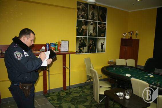 В ході санкціонованого обшуку було вилучено: два покерні столи, три системні блоки комп’ютерів, на яких здійснювався аудіо-відео запис подій, що відбувались у всіх приміщеннях закладу, дві камери відео спостереження, більш як півтисячі фішок та понад двадцять колод карт.
