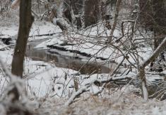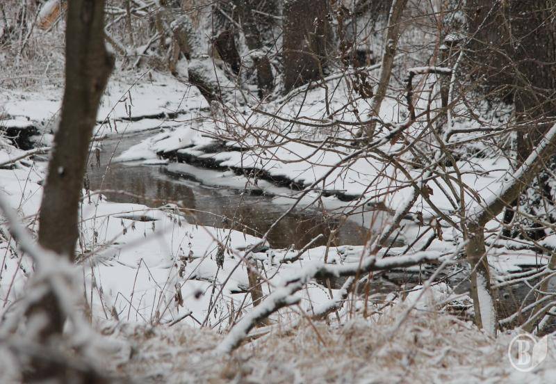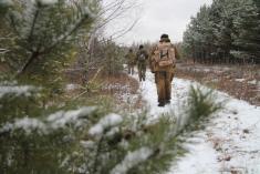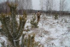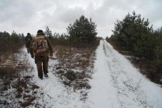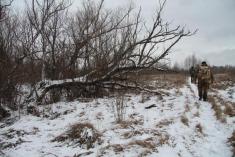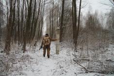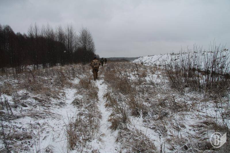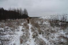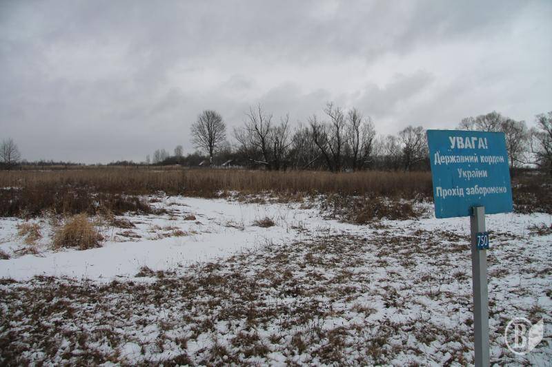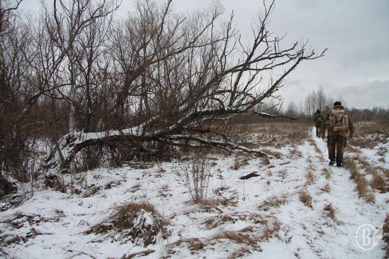 На этом участке украинско-русской границы на территории Черниговщины - лес, кустарники, болота. По подмерзлому болоту идти тяжелее всего. Но хорошо, что подмерзло.