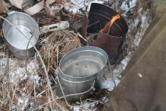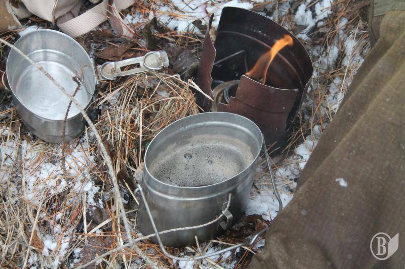 Наши черниговские воины –«афганцы» достают производные устройства – готовят чай и подогревают кашу на огне, которого не видно. Все по законам войны.