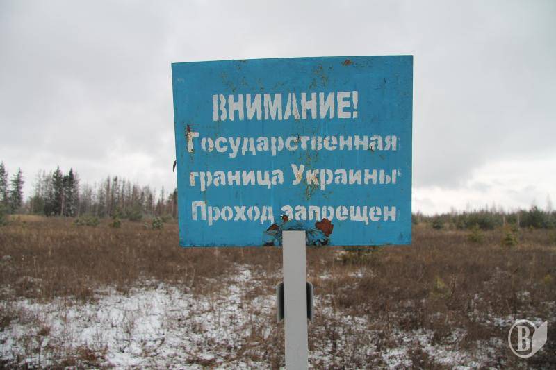 С нашей стороны – предупреждения, что это украинская граница, с другой – по русски написано предупреждение об украинской границе.