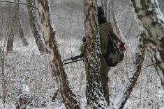 В одном месте слышим выстрел. Главные подают знак. Приседаем. Опытные воины сходятся на том, что выстрел из автоматического оружия. На русской территории. Допускают, что какой-то браконьер подстрелил или пытался подстрелить дичь. Больше выстрелов нет. Двигаемся дальше.