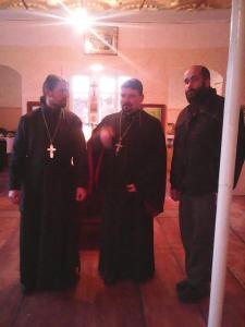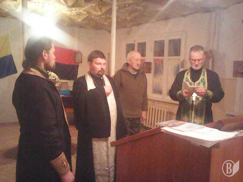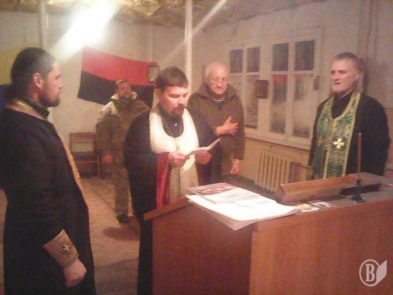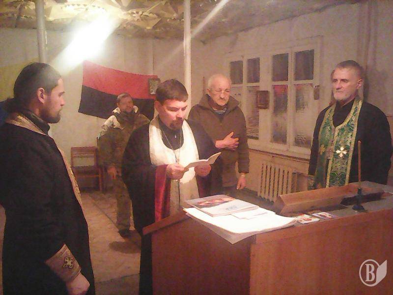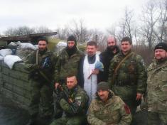 Волонтер, священник храма св. Екатерины УПЦ КП (г. Чернигов) о. Евгений Орда отслужил молебны на блок-посту добровольцев. А вместе с побратимами о. Юрием и о. Владимиром (священниками УПЦ КП) провел службу во временном храме Архистратига Божьего Михаила, который находится в казармах батальона.