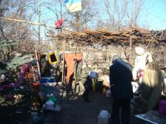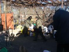 На фото, которые сделала Татьяна Миргородская видно, что они лежат накрытые пластиковым столом на пустыре в Песках. Около них разгружается волонтерская машина, никто не видит в них угрозы.