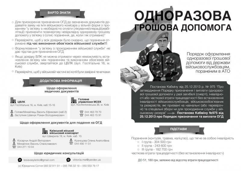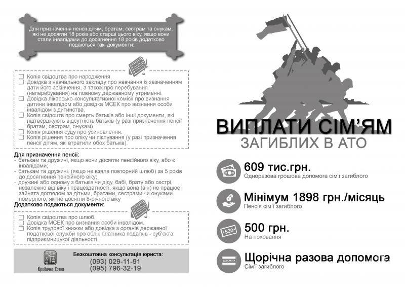 Для них і для тих героїв, що продовжують захищати гідність, честь і територіальну цілісність України, на прохання депутатської фракції ВО «Батьківщина» в Чернігівській міській раді, Всеукраїнська правозахисна організація «Юридична сотня» зібрала методичні рекомендації щодо соціального захисту учасників АТО та їхніх сімей.