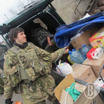 Невзирая на постоянные обстрелы, волонтерам удалось добраться до Песок, где базируются добровольцы батальона ОУН под командованием Николая Коханивского.